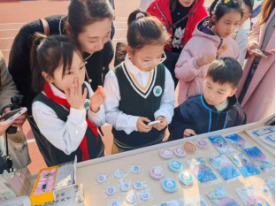 依托校园特色文化打造的文创产品系列,在现场备受青睐。社团同学在学校的引导下,深入挖掘校园文化内涵,将校园风景、标志性建筑、吉祥物等独特元素融入设计,推出了印有校园风光的帆布包、绘有教学楼与图书馆的明信片、以校园吉祥物为原型的徽章与贴纸等产品。这些充满校园记忆的文创作品,既是学子们艺术才华的展现,更是学校文化育人成果的鲜活载体,成为传递合肥一中瑶海校区温度与魅力的重要媒介。