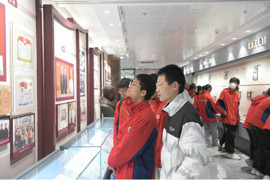 当日上午8:20,新站实验中学的师生们抵达校区。在团委程淑媛老师和四位高二同学的热情引导下,同学们首先开启了校园与校史馆参观之旅。漫步于整洁雅致的校园,感受着浓厚的学术氛围与人文气息;驻足校史馆内,通过珍贵的图文资料、实物展品,深入了解合肥一中的办学历史、辉煌成就与精神传承。校区的优质办学条件、深厚文化底蕴与鲜明育人特色,给来访师生留下了深刻印象。