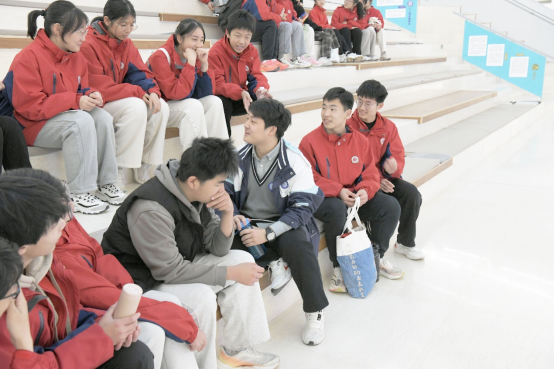 互动交流环节在经方楼一楼中庭温馨开启。现场,大家围绕学习方法、学业规划、高中生活等话题畅所欲言,学长学姐们分享了自身的备考心得与成长感悟,老师们则针对同学们提出的疑问耐心解答、悉心指导,用真诚的话语与实用的建议,为同学们点亮前行灯塔,现场氛围热烈而融洽。