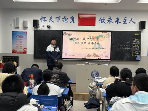 此次主题班会紧扣文明礼仪月主旨,以小见大、由浅入深,既传承中华传统礼仪文化精髓,又贴合高中生校园生活实际。同学们在互动交流中学会理解包容,在案例剖析中掌握相处之道,在公约制定中凝聚奋进力量。相信这场文明之旅终将化作成长路上的不竭动力,让明礼之花绽放在校园每个角落,让修德之行伴随学子奔赴顶峰之约,以高尚品德与文明素养,书写青春华章。