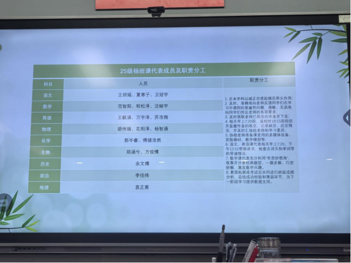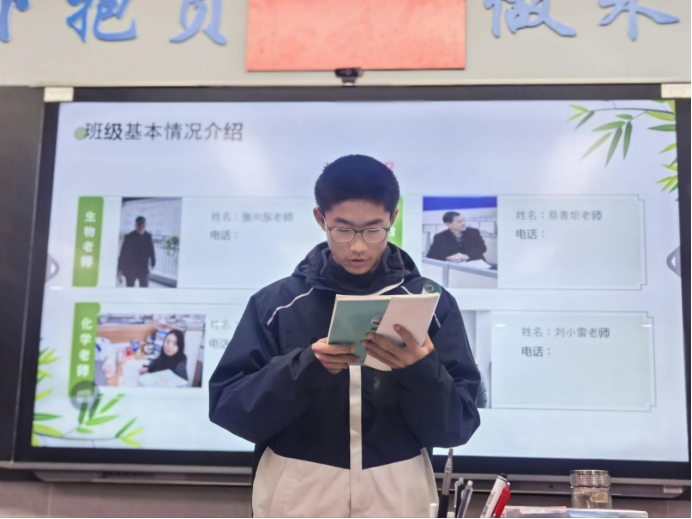 在班级组织架构建设方面,段老师详细介绍了以“服务、引领、自治”为理念构建的班委会、各学科课代表团队、团支部以及值日班长制度的运行情况。他指出,经过民主推选与初期磨合,一支责任心强、富有活力的学生干部队伍已经形成,并在日常管理、活动组织、师生联络中发挥着日益重要的作用。这套架构不仅保障了班级事务的高效运转,更在实践中锤炼了学生的组织协调与领导能力。