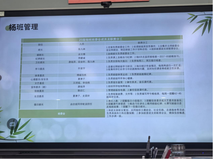 班级文化建设是段老师汇报的重点。他提到,班级以“弘扬科学精神,砥砺家国情怀”为核心,开展了一系列主题鲜明的文化活动:如“杨振宁先生科学与人文精神”学习研讨会、国庆主题板报创作、每日经典诵读、以及鼓励多元发展的“微特长”展示角等。这些活动旨在营造积极向上、包容并蓄的班级氛围,让同学们在潜移默化中塑造健全人格,提升综合素养。