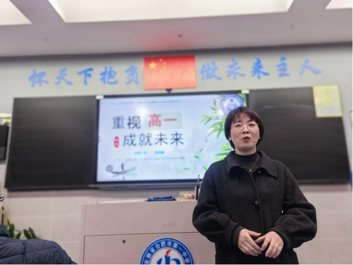 随后,校长兼本班历史教师肖琼发表了重要讲话。肖校长首先代表学校,对2025届杨振宁班在短时间内展现出的良好开局表示祝贺,对班主任段明贵老师及全体任课教师的辛勤付出表示敬意,也对家长们的信任与支持表示感谢。