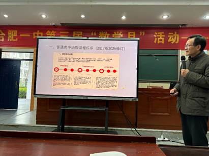 为深化对《普通高中地理课程标准(2017年版2025年修订)》的学习与落实,12月10日上午,合肥一中地理组特邀原副校长方小培返校,带来了一场墨香与真知交融,聚焦核心素养培育与教学实践创新的专题讲座。作为教育部地理新课标修订组核心成员,方小培凭借参与课标审定与教学实践的深厚积淀,为全校地理教师呈现了一场兼具学术高度与实践温度的思想盛宴,为学校地理学科高质量发展注入新动能。