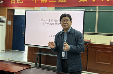 活动最后,许传宝主任作总结发言,他对方校长的精彩分享表示感谢,并希望全体教师以此次讲座为契机,将课标要求转化为生动的课堂实践,让地理教学既见天地之大,亦显人文之美,为培养具有家国情怀与科学素养的时代新人而不懈探索。