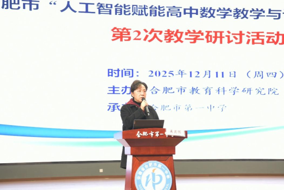 12月11日下午,为期三个半小时的 “人工智能赋能高中数学教学与评价的创新实践” 主题研讨会在合肥一中瑶海校区顺利召开。本次大会汇聚合肥市多所重点高中一线教师与教育专家,以案例展示、专题报告、专家点评的多元形式,深入探讨人工智能与高中数学教育的深度融合路径,为智能时代数学教学改革注入新动能。