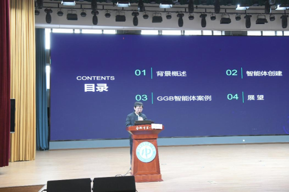 合肥八中操瑞康老师聚焦 “智能体赋能GGB作图:效率跃迁与生产力升级实战”,现场展示了智能体在高中数学多媒体作图中的创新应用。通过简单指令输入,智能体快速生成复杂数学图形,不仅大幅提升作图效率,更帮助师生聚焦数学本质规律的探究。操老师表示,智能体技术正撬动更加深远的数学教学变革,让多媒体工具真正服务于思维培养。