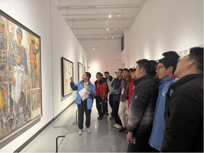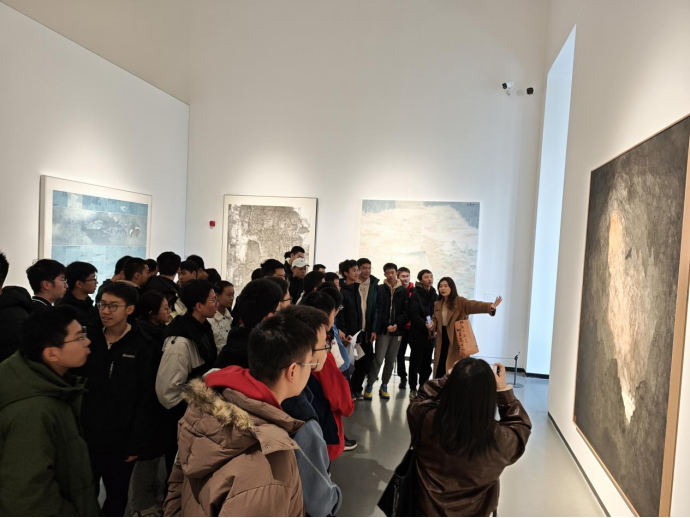 抵达美术馆后,同学们在老师与美术馆讲解员的引导下有序进入展厅。馆内展览内容涵盖传统书画与现代艺术装置,跨越不同时代与风格,宛如一部立体艺术史。同学们静心观展,不仅观赏作品形式,更深入体会其背后的创作理念与文化内涵。艺术不再是遥远的词汇,而是可触、可思、可共鸣的在场体验。