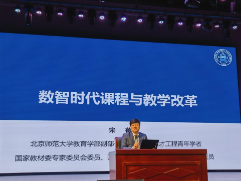 此次活动特别邀请北京师范大学教育学部副部长、国家重大人才工程青年学者、国家普通高中课程修订综合组核心成员宋萑教授做《数智时代课程与教学改革》专题报告。宋教授从课程改革与智能教育融合的宏观视角对两节展示课进行点评,肯定了两位老师将AI技术与古诗文教学深度结合的尝试,认为这种教学模式既契合普通高中课程修订的核心要求,又为学生核心素养的培养提供了新路径。同时他强调,AI赋能教学需把握“技术为体、育人为魂”的原则,让智能工具真正服务于学生的思维发展与文化传承。
