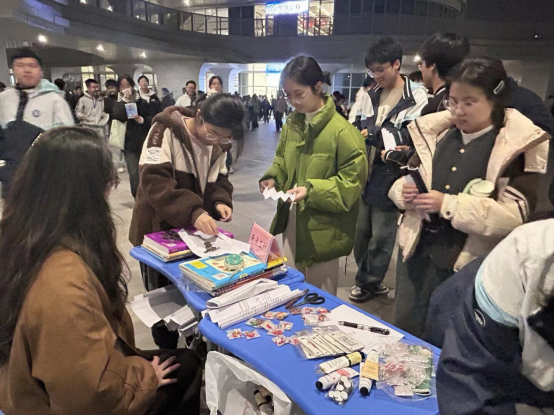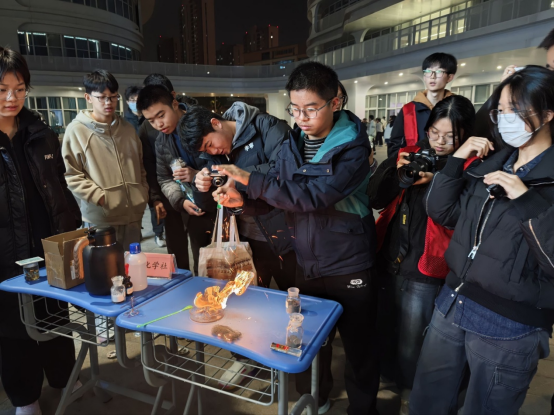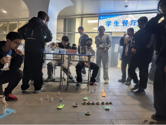 活动期间,三叶草中庭始终人声鼎沸、暖意融融。每天17:20至18:15的黄金时段,各社团轮番登场,以精心筹备的特色活动点燃师生热情。12月10日的校园以“格物致知·科创未来”为主题,趣味化学社的奇妙实验、物理星光创意社的创意发明、天文地理社的星空奥秘分享、玩转地球社的人文地理科普、智航科创社的科技实践展示、奇点工坊的创意制作体验,天元数学社的趣味谜题、咖啡社的手工泥塑,通过沉浸式互动、通俗化科普、创意化实操等多元形式,让同学们在动手实践中感受科学魅力,在跨界体验中激发探索热情。