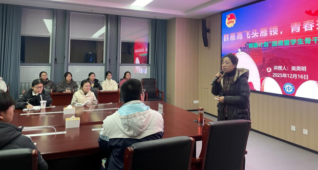 2025年12 月 16 日下午课外活动时间,合肥一中首期 “群雁计划” 学生骨干培训会第三讲在淝河校区经方楼阶梯教室举行。活动由校团委、政教处组织,合肥一中校长吴英明、政教处副主任唐安、学社联指导老师李凤凤及全体学生组织成员到场参加活动。
