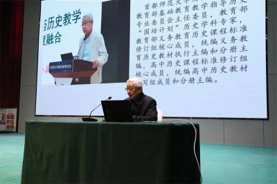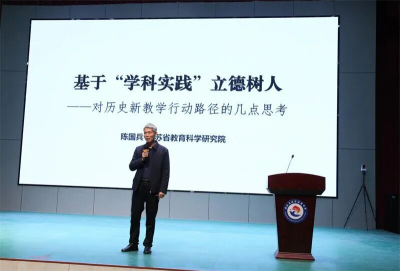 首都师范大学叶小兵教授的《跨学科主题学习的历史学科实践》讲座,则紧扣本次活动中的鲜活案例,从内涵界定、主题遴选、活动设计、多元评价及教学启示五个方面进行深度解读。他提出,应通过学科实践加强历史课程与其他课程的横向联系,建构“大历史课程”有机结构,最终实现学生综合素养的全面发展。