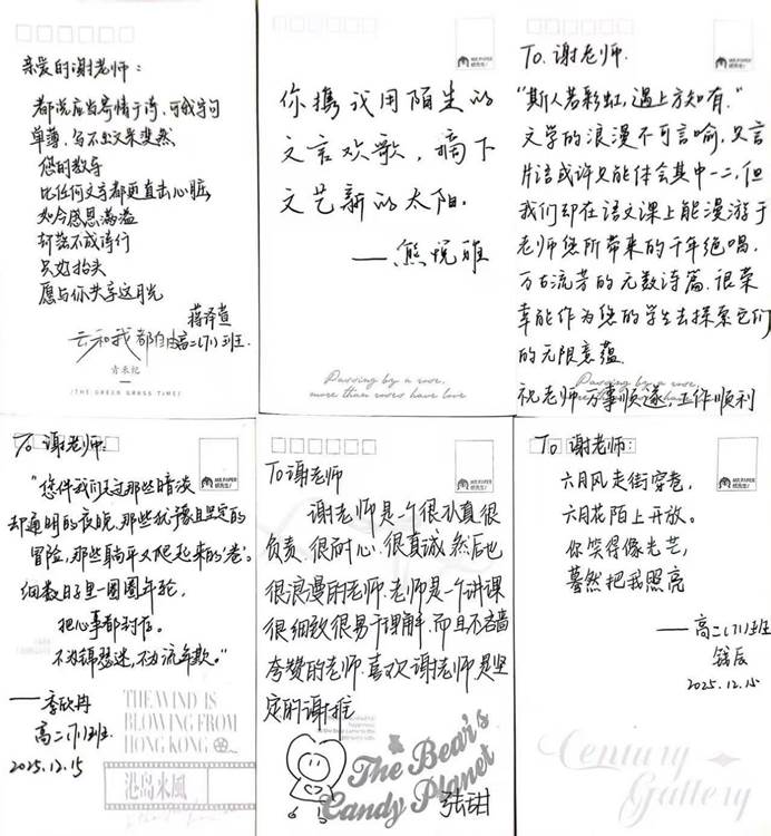 为赓续尊师重道的千年文脉,涵养崇德尚礼的校园新风,上周,合肥一中淝河校区高二年级部启幕文明礼仪月“夸夸我的老师”活动。高二 71 班以一纸贺卡为媒,融日常师生相伴的温情于笔墨,让敬师之心浸润青春岁月,尽显新时代少年的谦谦之风。