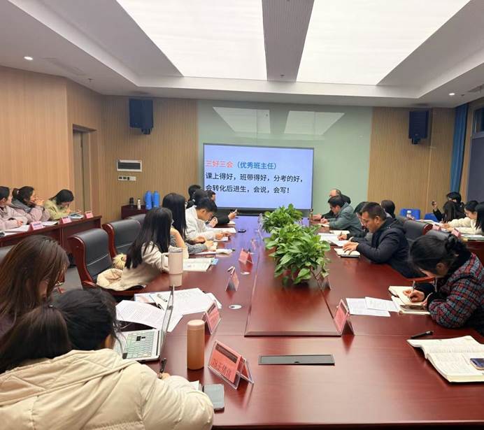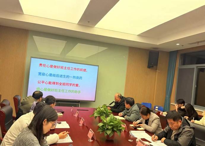 为助力高一班主任队伍专业化成长,夯实班级管理根基,凝聚育人共识,12月21日晚,合肥一中淝河校区特邀高二博雅班班主任、中学数学正高级教师、特级教师郑汉洲老师,为全体高一班主任带来一场主题鲜明、干货满满的班主任工作经验分享报告。活动由淝河校区高一年级部统筹组织,合肥一中淝河校区执行副校长蔡胜国、高一年级部主任尚启亮、副主任杨靖出席会议,全体班主任参与学习,现场氛围热烈,交流深入。