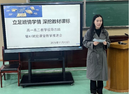 为深化教学视导成果运用,探索人工智能赋能课堂教学的新路径,推动思政课改革创新与教师队伍建设, 11月13日上午,合肥一中在滨湖校区成功举行了高一高二视导工作总结反馈暨AI赋能课堂教学工作推进会。合肥一中“江河湖海”四大校区全体思政教师齐聚一堂,合肥市教科院教研员侯新旺莅临指导。本次会议由合肥一中思政学科主任蔡善炬主持。
