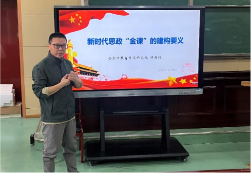 合肥市教科院侯新旺主任为全体教师带来了题为《新时代思政“金课”的建构要义》的专题讲座。侯主任高屋建瓴,以习近平总书记对思政课建设的重要指示精神为根本遵循,深入阐述了“六好教师”标准、“八个相统一”教学原则以及“道、学、术”统一的实践路径。他结合本次视导的具体反馈,精准指出了当前教学中存在的不足,并围绕“依标教学”、“八个无不”等关键词,详细讲解了如何打造回归学科本质、学生真心喜爱终生受益的思政“金课”。侯主任的讲座既有理论高度,又有实践深度,为在座教师的教学与研究指明了前进方向。