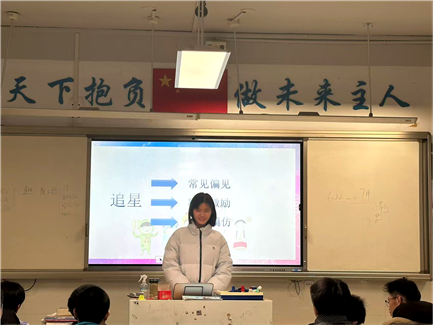 三场演讲,题材迥异,风格各殊,却皆以思想为火种,点亮了方寸讲台的光芒。从绿茵赛场的起落中,我们窥见了直面人生的态度之光;在《三体》宇宙的深邃里,我们捕捉到了坚守自我的人文之光;于追星热潮的思辨间,我们找寻到了砥砺成长的奋进之光。这束束光芒交织汇聚,既传递着质朴真挚的人生道理,更彰显着青春向上的人性温度,为整个班级注入了向善向美的澎湃力量。