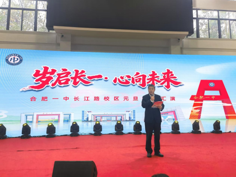 文艺汇演在热情洋溢的开场词中拉开帷幕。四位师生主持人以“百年文脉,薪火相传”开篇,带领全场观众共同回顾合肥一中的深厚底蕴,展望长江路校区的新征程。合肥一中党委书记封安保登台致辞,向全体师生送上新年祝福,勉励大家秉持“怀天下抱负,做未来主人”的壮志,续写合一辉煌。