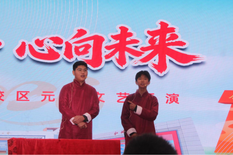 第三篇章“青春万象”洋溢朝气与创意。舞蹈社带来的国风舞蹈《寄明月》,舞姿翩跹,意境优美,将现代编舞与传统元素完美结合,令人赏心悦目。128班表演的歌曲《红豆》,以纯净的声线和细腻的情感处理,诠释了青春岁月里对美好情感的向往。130班相声《内卷》,紧贴校园生活热点,以幽默犀利的语言剖析学业竞争现象,在笑声中引导同学们思考健康的成长心态。125班的歌伴舞《少年当歌》,旋律激昂,舞步铿锵,以充满力量感的舞台呈现,生动诠释了“少年负壮气,奋烈自有时”的豪情,彰显了合一学子意气风发、担当有为的时代风貌。