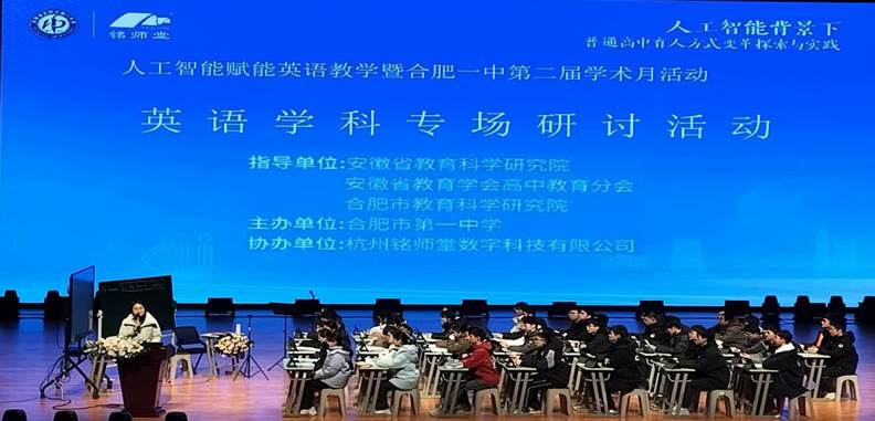 2025年12月25日,合肥一中成功举办“人工智能赋能英语教学暨第二届学术月”英语学科专场研讨活动。本次活动在安徽省教育科学研究院、安徽省教育学会高中教育分会、合肥市教育科学研究院的指导下,由合肥市第一中学主办,杭州铭师堂数字科技有限公司协办,通过课堂展示、专家研讨、主题报告等环节,系统呈现了智能技术与英语教学融合的创新实践。