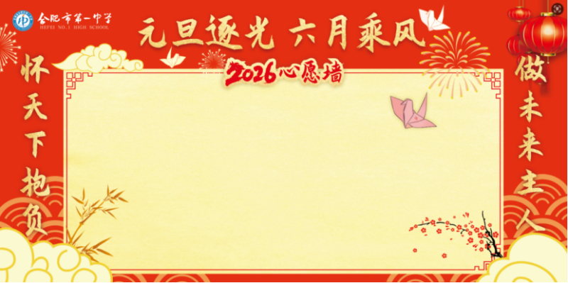 2026 年元旦之际,合肥一中瑶海校区2026届高三年级以 “元旦逐光 六月乘风” 为核心主题,精心打造了 “心愿墙寄望 + 多层级祝福视频” 的系列活动。从满墙青春心愿到声动人心的视频寄语,从学生自发的热望表达至师长们的倾心赋能,活动构建起 “双向奔赴” 的温暖场域,既为冲刺高考的学子送上节日慰藉,更将成长力量与备考信心注入逐光之路,成为践行学校 “怀天下抱负,做未来主人” 校训的生动实践。