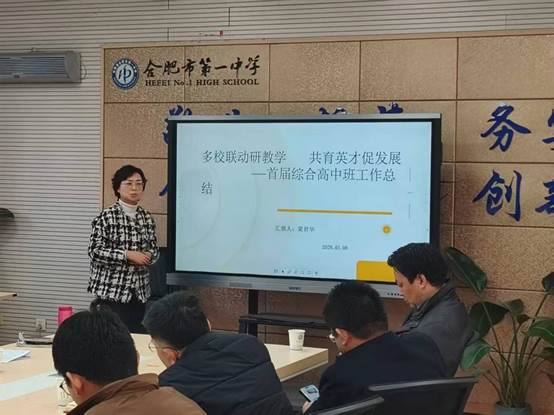 合肥市综合高中代表合肥市九中梁君华老师分享的主题是《多校联动研教学 共育英才促发展》。梁老师从综合高中“基础+选择”的育人模式出发,分享历史学科如何服务于学生多元发展需求的教研实际。重点介绍分层分类教学的实施、历史学科与职业规划教育的结合、实践性历史活动的开展,以及如何在困难局面下坚持联合教研的举措及反思。