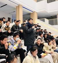 2026年1月12日16:30,由合肥一中淝河校区美术组组织的学科融合式美育大讲堂“艺言艺语”演讲活动在经方楼二楼大厅举办。合肥一中党委书记封安保、合肥一中淝河校区执行副校长蔡胜国、高一年级部主任尚启亮,高二年级部主任张典俊、副主任陈银科及高一年级师生参与本次活动。活动由淝河校区美术组组长冯庭慧主持。