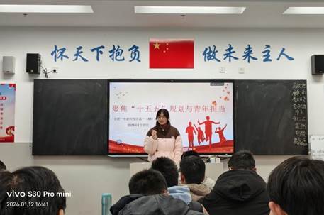 为在青年学子中快速凝聚共识、激发使命感,高一(88)班团支部在班主任王玺的带领下,于2026年1月12日,利用班会时间,组织了一场精简务实、富有成效的“聚焦‘十五五’”主题团课。