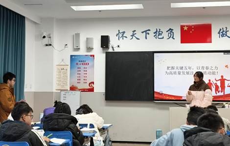 随后,副书记王江睿围绕“高质量发展”与“新质生产力”两大核心关键词展开精要解读,帮助团员及入团积极分子迅速把握未来五年国家发展的战略重心。
