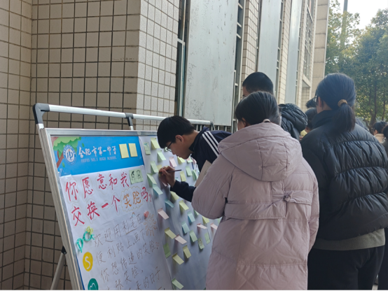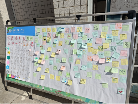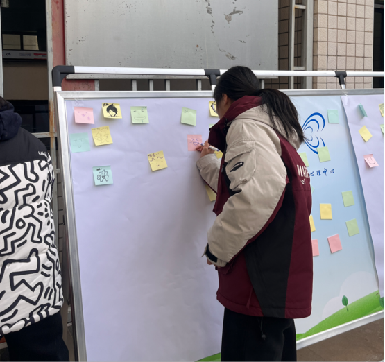 现场设置“笑脸墙”涂鸦和“暖心交换”两大环节。师生用画笔在巨幅海报上绘制笑脸,表达个性与情绪;通过蓝、黄、粉三色便签匿名倾诉烦恼、分享解压妙招、互送温暖鼓励,并随机抽取组成“解压能量包”。活动旨在营造积极心理氛围,提升学生情绪管理与互助能力。