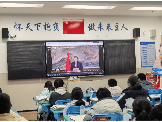为深入学习领会2026年习近平主席新年贺词精神,合肥一中淝河校区高一(95)班于1月12日以班会课为载体,成功开展专题团课活动。此次团课活动由班级团支部书记高子安主持,全体同学齐聚一堂,在视听沉浸中接受思想淬炼,凝聚奋进力量。
