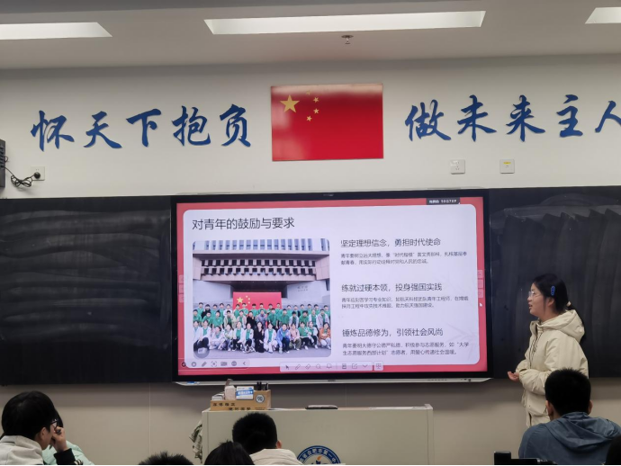 团课开篇,同学们观看了贺词视频。习近平主席“岁序更替,华章日新”的温暖问候拉开团课的序幕。从“十四五”收官之年,140万亿经济总量的辉煌成就到“十五五”开局之年,“锐始者必图其终,成功者先计于始”的奋进号召;从天问2号追星之旅到“春超”“城超”热闹非凡的民生图景。一句句掷地有声的嘱托,一幕幕振奋人心的画面,让同学们直观感受到祖国发展的澎湃动力与时代前行的铿锵步伐。课堂内氛围庄重而热烈,不时响起自发的掌声。