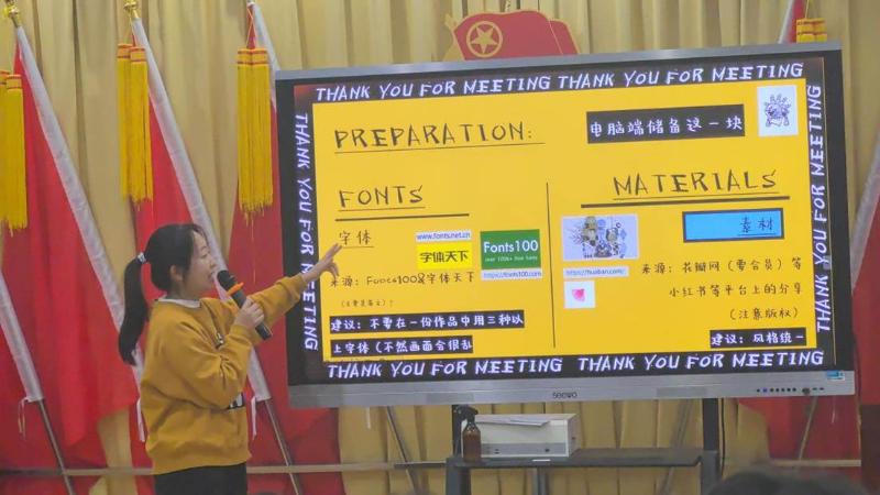 第二部分由学生社团联合会主席欧阳芙重点讲解海报制作方法,带来实操性满满的技能分享。为大家推荐了实用的制作软件,讲解了素材搜集、构思设计的要点。结合校园活动海报优秀案例与常见问题案例展开对比分析,从版面布局、色彩搭配、文字排版、主题突出等方面,拆解海报制作的核心技巧与设计思路。她鼓励大家在遵循规范的基础上大胆创新,让海报既符合宣传要求,又兼具视觉吸引力与校园特色,切实提升海报的宣传效果。