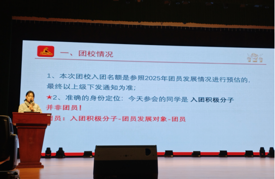 接着,校团委委员张何淼老师面向全体入团积极分子,宣读团校组织章程、介绍团课设置、明确入团要求和规范流程,希望积极分子能够珍惜学习机会,不断提升自己的综合素质,为早日成为一名光荣的共青团员而努力奋斗。