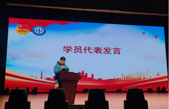学员代表高二年级74班台浩然代表同学们表达了向团组织靠拢的进取意愿,期待通过团课学习的方式收获精神洗礼,将以继续新时代好青年的标准要求自己,用实干诠释初心使命,争取早日加入共青团这个光荣集体。