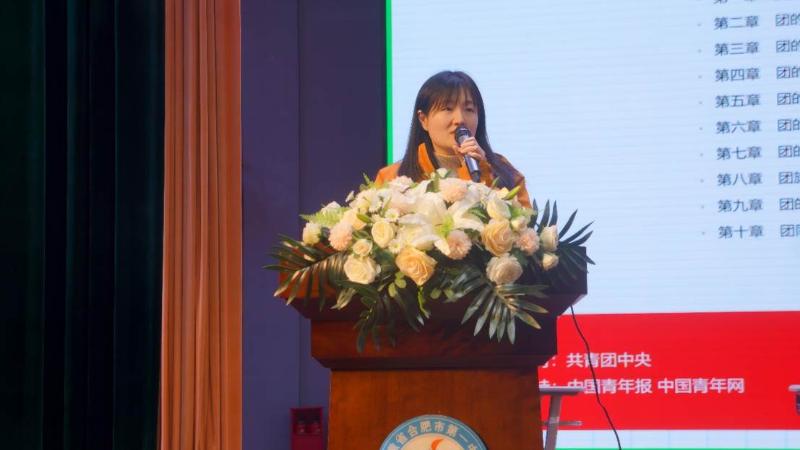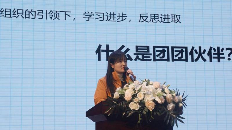 接着,她通过视频和图片展示了优秀团员们在组织生活和社会实践中的风采,号召同学们向“团团伙伴”们学习,培养责任意识,寻找新一代青年们的时代使命,在实现中国梦的路上卓厉奋发,勇于争先。