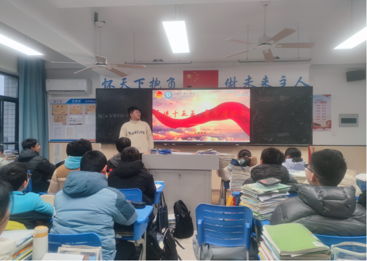铭记辉煌过往,坚定青春信仰;眺望壮阔前程,照亮奋斗征途。1月19日下午,合肥一中长江路校区高一(127)班气氛庄重而热烈。在班主任郭老师的指导下,班级成功举办了一场以“回望‘十四五’,奋进‘十五五’”为主题的宣讲班会,旨在引导同学们深刻理解国家发展蓝图,将个人理想融入时代征程。