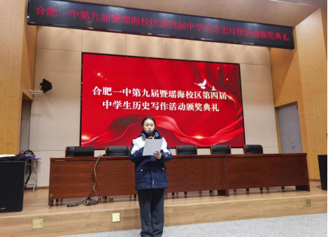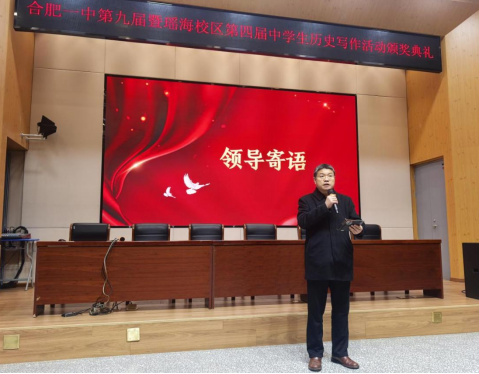 为深入挖掘历史文化的时代价值,传承红色基因、赓续文化血脉,推动思政教育与历史学习深度融合,引导青年学子从历史中汲取智慧力量、坚定理想信念,2月2日,合肥一中第九届暨瑶海校区第四届历史写作大赛颁奖典礼在瑶海校区汇川堂隆重举行。合肥一中党委书记封安保、合肥一中党委委员、副校长肖琼、瑶海校区执行副校长朱奇以及高一年级部主任马晓骏、高二年级部主任汪结义、高三年级部主任白云波出席典礼。
