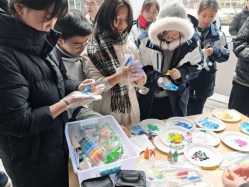 最受学生欢迎的是2月3日举办的“请与我击掌”活动,彩色颜料台旁排起了长长的队伍,全体同学积极参与。大家挑选自己喜欢的颜料,涂在掌心,有的和好友用力击掌,让友情在互动中传递;有的走到专属白板前,重重拍下手掌印,同学们的欢声笑语,成为食堂门口期末周最独特的风景。每一次击掌,都是一次压力的释放;每一个掌印,都是一份迎考的勇气,同学们在趣味互动中收获了快乐,和迎接期末考试的力量。