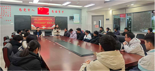 最后汪主任进行了总结讲话,深情寄语全体学生会干部,从角色定位、责任担当与成长发展三个维度提出殷切期望:他首先以“桥梁”为喻,强调学生干部要发挥纽带作用,一头连接学生心声,一头贯通年级管理,在上传下达中确保信息畅通、师生同心;随后,他以“风景与主人”为赞,高度赞誉自治会成员以实干担当成为校园中最靓丽的风景线,更勉励大家以主人翁姿态主动参与校园建设,用行动诠释对集体的热爱与责任;最后,他以“温馨提示”为关怀,语重心长地叮嘱同学们,在履行职责的同时要善于科学规划时间,做到“学习与工作双翼齐飞”,在服务集体中锤炼能力、在奉献他人中成就自我,实现全面发展。 汪主任的期许如春风化雨,让在场师生心潮澎湃,斗志昂扬。