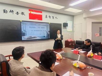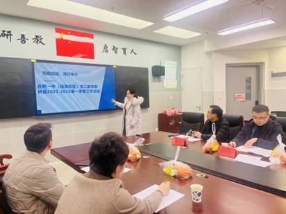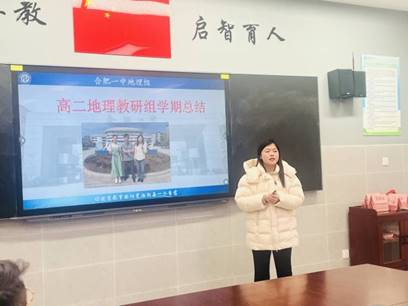 在汇报环节,语文教研组吕枫云老师、数学教研组田曦组长、英语教研组杜睿组长、物理教研组张益组长、化学教研组李复兴组长、生物教研组彭巧玲组长、历史教研组窦艳组长、政治教研组丁云组长、地理教研组姚尧组长依次作总结陈述。各位发言代表聚焦学科前沿与教学实际,以详实的数据、生动的案例、深刻的反思,图文并茂呈现了各教研组在强化集体备课、深耕课堂实效、探索融合教学、指导学科竞赛、促进教师专业成长及培育学生核心素养等方面的举措与丰硕成果。汇报内容各具特色、亮点突出,充分展现了合肥一中教师团队严谨求实的学术风范、协同共进的团队文化与锐意创新的时代气息。