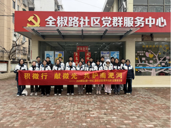 为弘扬志愿服务精神,增强学生社会责任意识,2月8日上午,由合肥一中长江路校区学生团总支牵头,学生团总支、青年志愿者协会成员以及入团积极分子代表共同参与的学生干部进社区公益服务活动,在瑶海区明光路街道全椒路社区顺利举行。此外,在瑶海区教体局与当地社区的促成下,本次活动成功与合肥市第三十八中学联动开展,两校学生共同以实际行动深入社区,投身环保实践,为守护合肥母亲河——南淝河的生态环境贡献青春力量。