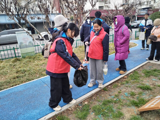 上午9时许,学生志愿者们准时在社区集合,身着统一标识的服装,手持清洁工具,精神饱满地沿着滨河路开展环卫工作。在社区工作人员和带队老师的指引下,同学们分工协作,认真细致地对河道沿岸步道、绿化带及公共区域的纸屑、塑料袋、烟蒂等各类垃圾进行清理。料峭的寒风并未减弱同学们的劳动热情,大家相互配合,在忙碌中体验劳动的辛苦与价值,以实际行动美化河岸环境,践行环保理念。