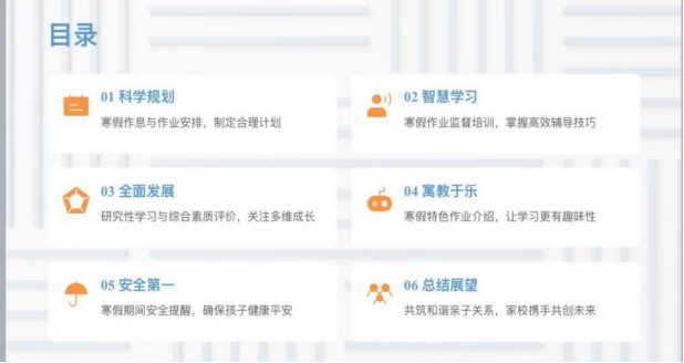 安全健康是底线。会议从交通、消防、财产、网络、饮食及心理安全六大方面发出温馨提醒,尤其强调了“关注孩子情绪、学会倾听、合理宣泄、降低期待”等心理支持策略,倡导营造温暖和谐的家庭氛围。