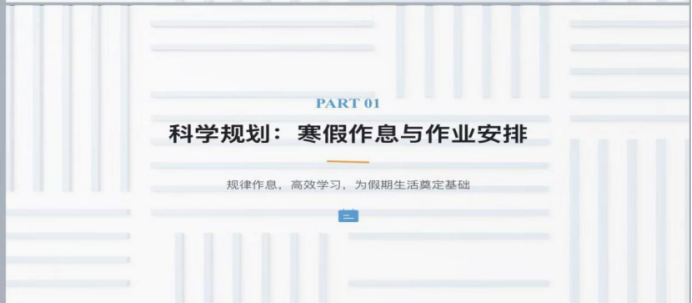 科学规划是基础。家长会中郑老师提供了详细的寒假作息建议,强调规律睡眠、文理交替、劳逸结合。郑老师建议家长与孩子共同制定“家庭公约”,将作业分解为小目标,并通过每周复盘动态调整,帮助孩子掌握自主规划的主动权。