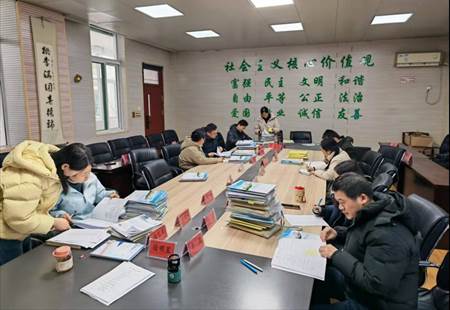 春启新程,研思不辍。为全面检阅学期教研成效,夯实教学规范,凝聚提质增效,2026年2月5日下午2:30,合肥一中滨湖校区2024级高二年级部主任徐明星,副主任徐艺荣、李磊,以及语文、数学、英语等高考学科教研组长在年级部会议室参加学期教师备课听课笔记检查暨教研组评比活动。
