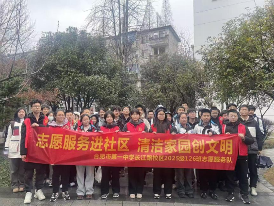 为弘扬志愿服务精神,践行劳动育人理念,2月6日,合肥市第一中学长江路校区高一(126)班志愿服务队走进学校周边社区,开展“志愿服务进社区,清洁家园创文明”主题实践活动,以实际行动为文明城市创建贡献青春力量。