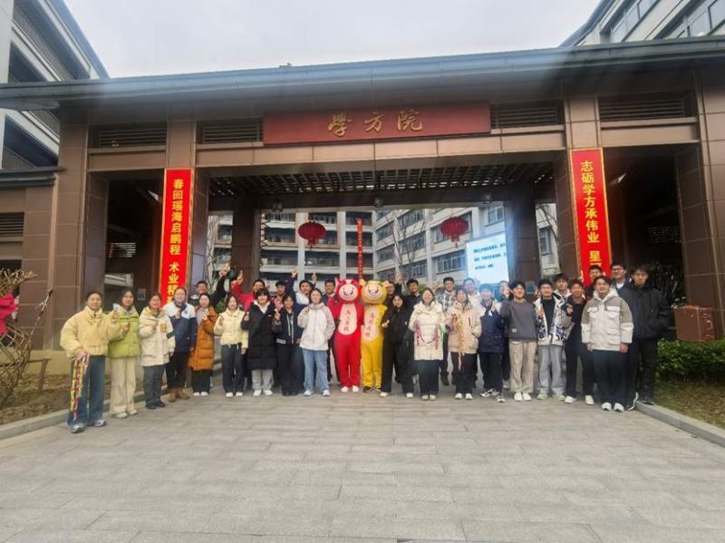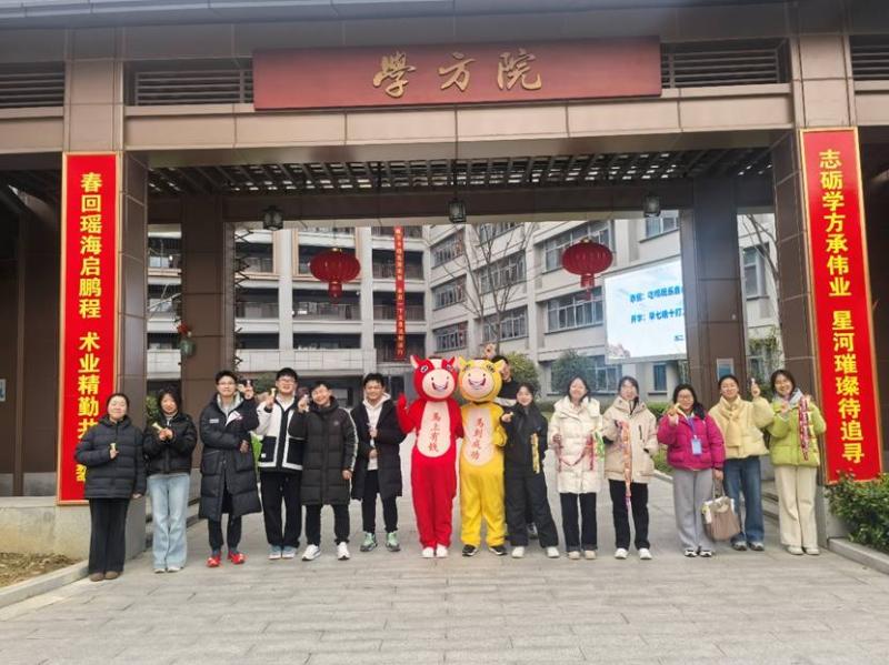 暖意融融的的学方院,早已被精心装扮。校门两侧,“春回瑶海启鹏程,术业精勤共登攀”“志砺学方承伟业,星河璀璨待追寻”的对联格外醒目,大红灯笼高高悬挂,处处洋溢着新春的生机与活力,仿佛在热情地呼唤着每一位学子的归来。