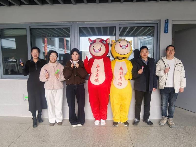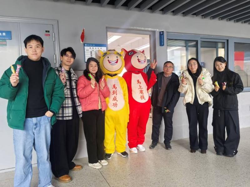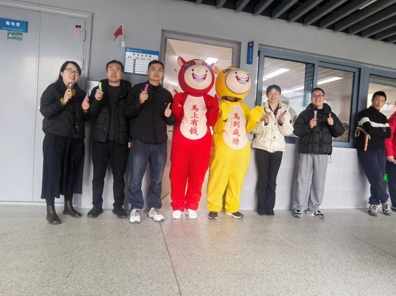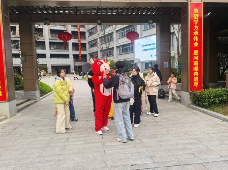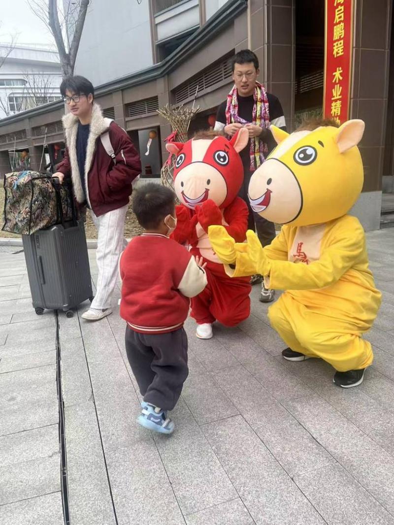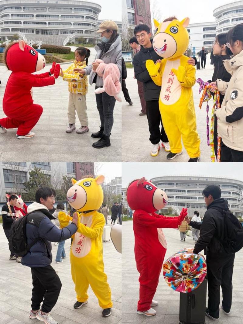 活动现场,最吸睛的莫过于两位“萌马使者”。身着“马上有钱”“马到成功”玩偶服的志愿者们,穿梭在熙攘人群中,主动与同学们热情击掌、亲密合影,灵动欢快的身影让现场笑语盈盈、暖意融融。