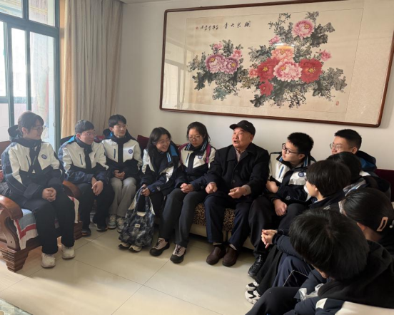 活动中,同学们带着精心准备的慰问品,怀着崇敬与温情,先后看望了两位高龄老人。在退伍老兵家中,同学们围坐聆听老人讲述那段激情燃烧的岁月,从保家卫国的热血经历中感悟军人的坚守与担当,泛黄的军装照、斑驳的军功章、深情的回忆,让在场的每一位同学都深受触动。老人用质朴的语言讲述着保家卫国的故事,团员们用专注的眼神回应着那份沉甸甸的责任与担当,用心感悟着最生动的爱国主义教育教材。